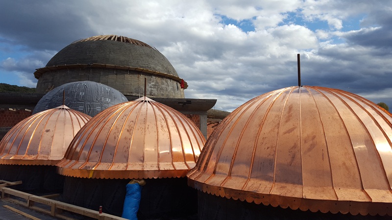 U završnoj fazi je betoniranje velike kupole, a istovremeno se postavlja izolacija i bakarni pokrov na malim kupolama i srednjoj kupoli. Takođe se pokriva i ravni dio krova.